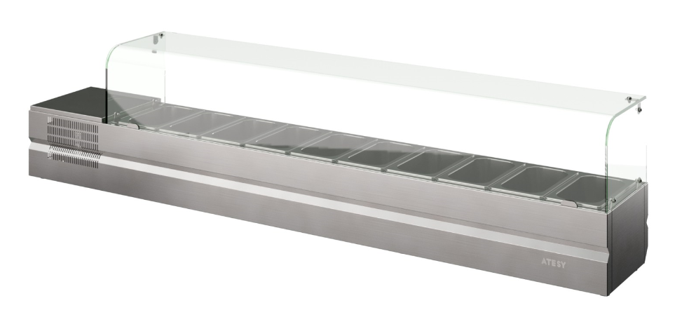 Охлаждаемая ванна: рассчитана на 10 гастроёмкостей GN‑1/4 глубиной 150 мм.