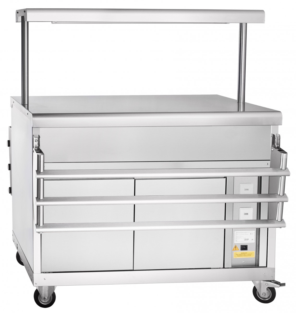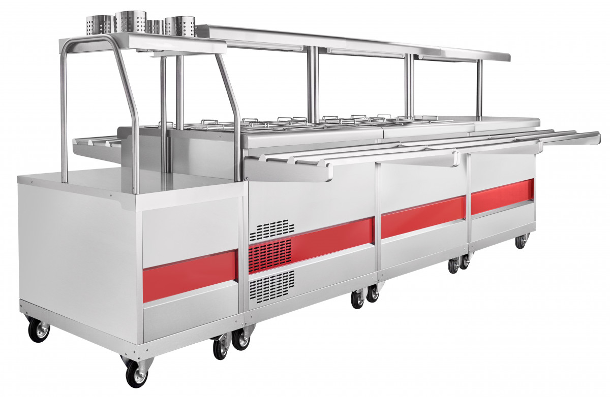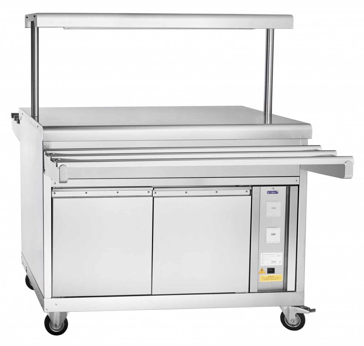Прилавок для горячих напитков передвижной предназначен для кратковременного хранения хлебобулочных и кондитерских изделий, а также для установки на его столе электронагревательный прибор (электрочайник) с напитками. Используется на предприятиях общественного питания самостоятельно или в составе технологических линий.