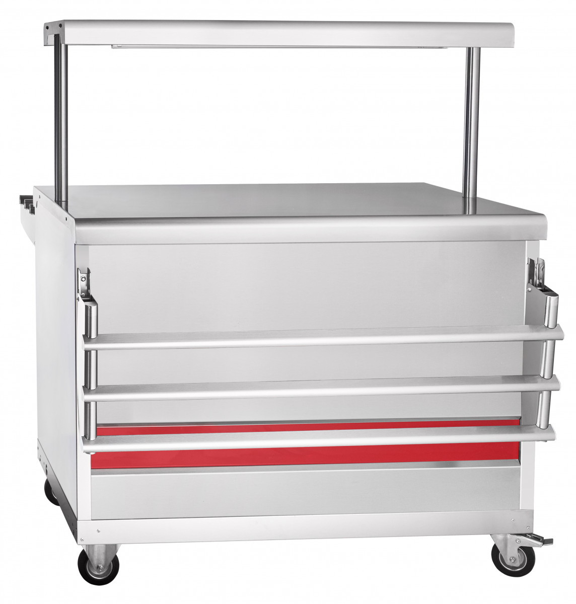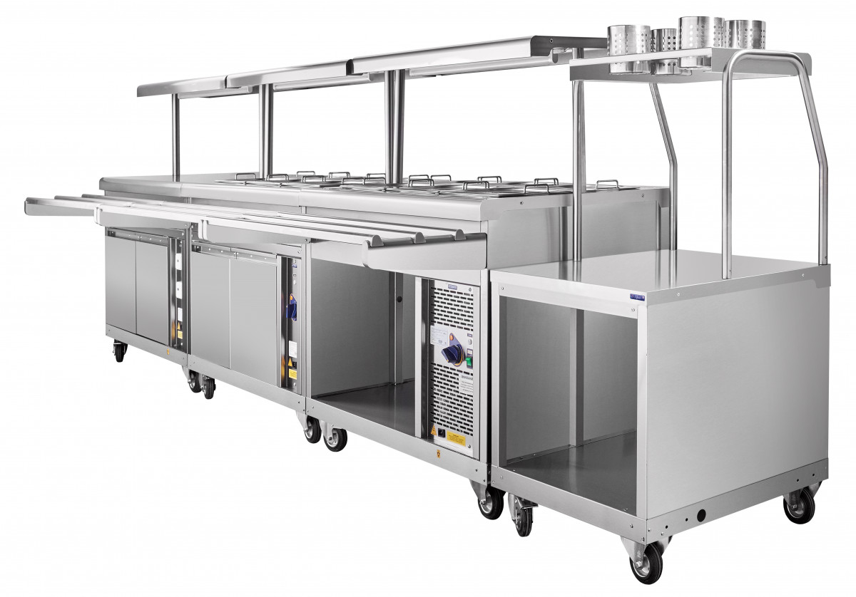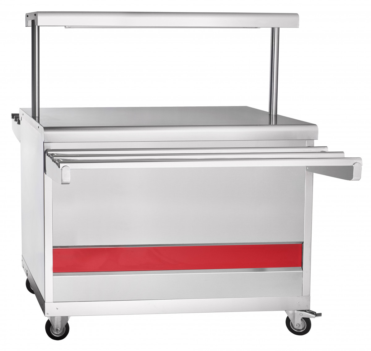 Прилавок для горячих напитков передвижной предназначен для кратковременного хранения хлебобулочных и кондитерских изделий, а также для установки на его столе электронагревательный прибор (электрочайник) с напитками. Используется на предприятиях общественного питания самостоятельно или в составе технологических линий.