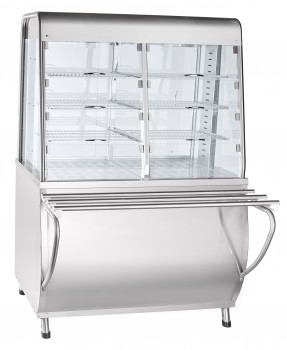 Прилавок-витрина тепловая электрическая кухонная типа ПВТ 70Т модели «ПРЕМЬЕР» предназначена для кратковременного хранения в теплом состоянии (при заданной температуре) пищевых продуктов на тарелках, функциональных емкостях, подносах и реализации их потребителю. Прилавок-витрина устанавливается на предприятиях общественного питания отдельно или в составе технологических линий самообслуживания