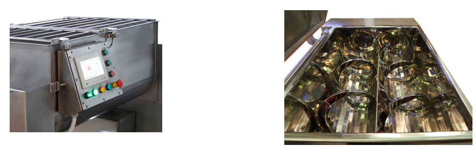 Корпус, шнеки и дежа мешалки выполнены из нержавеющей стали (AISI 304), допущенной к контакту с пищей. Безопасность работы мешалки обеспечивается решёткой безопасности, установленной сверху дежи.