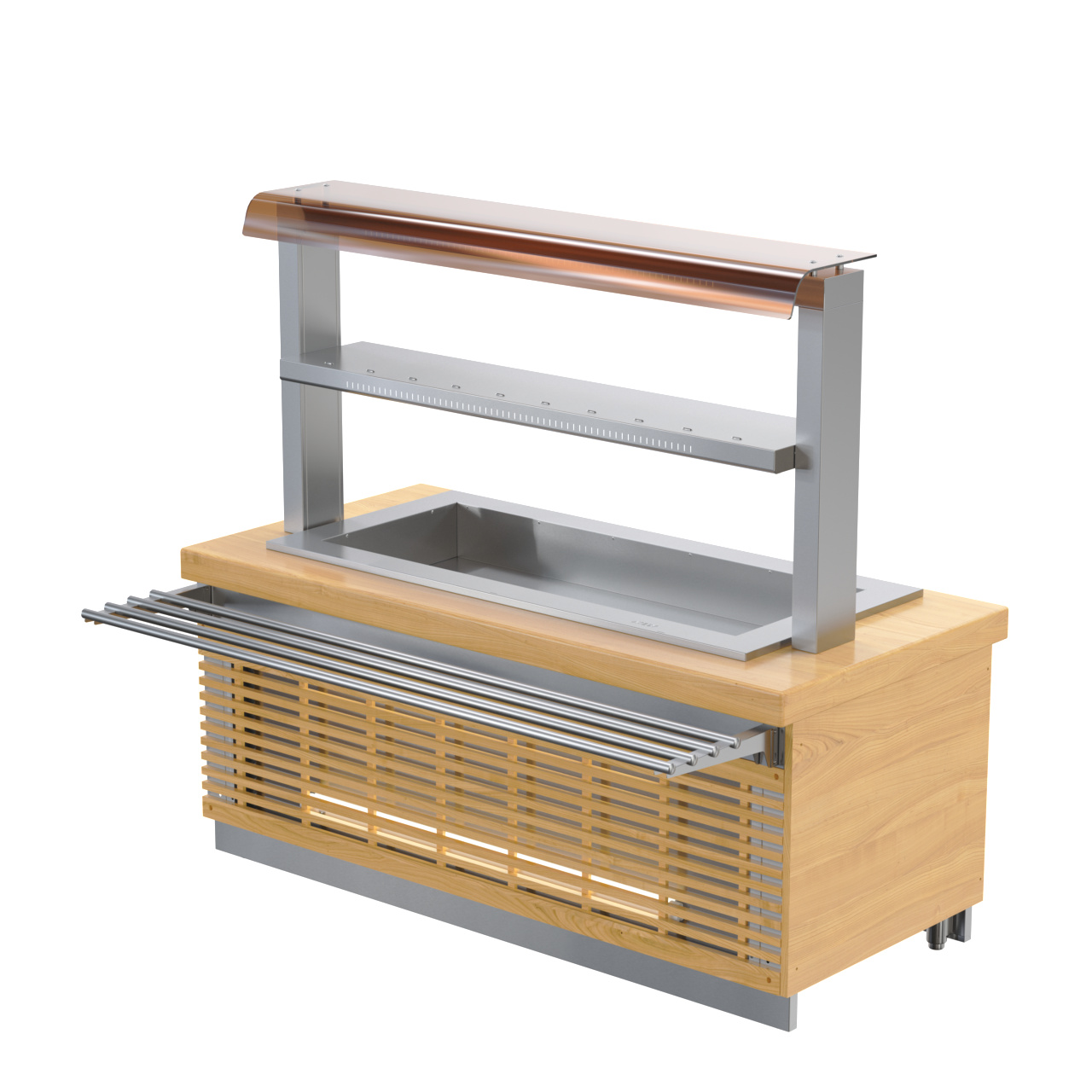 - Защитное лобовое стекло первого яруса 2-х ярусной полки предотвращает попадание посторонних предметов и грязи в пищу.