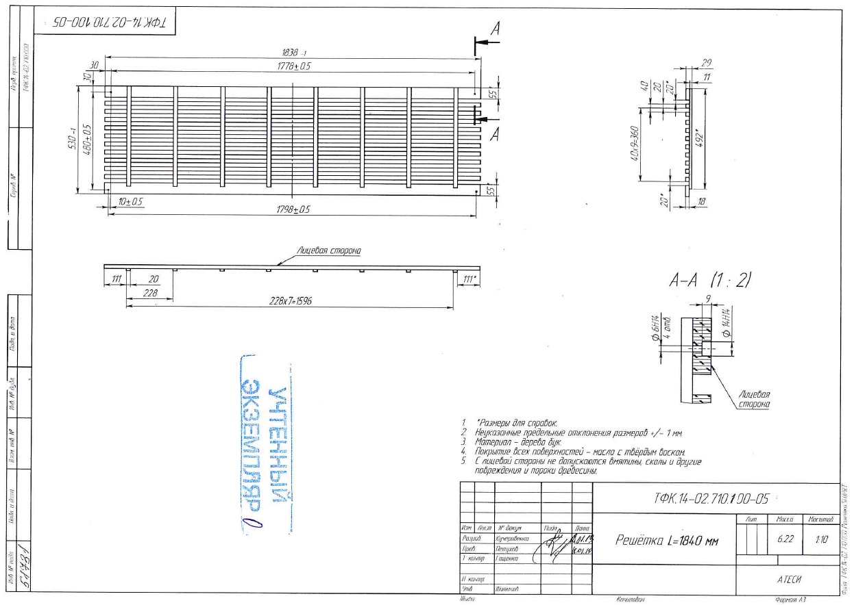 Декоративная решётка выполнена из натуральной древесины и обработана специальным экологически чистым составом, что значительно упрощает санитарно-гигиеническую обработку изделия не ухудшая его эстетический вид.