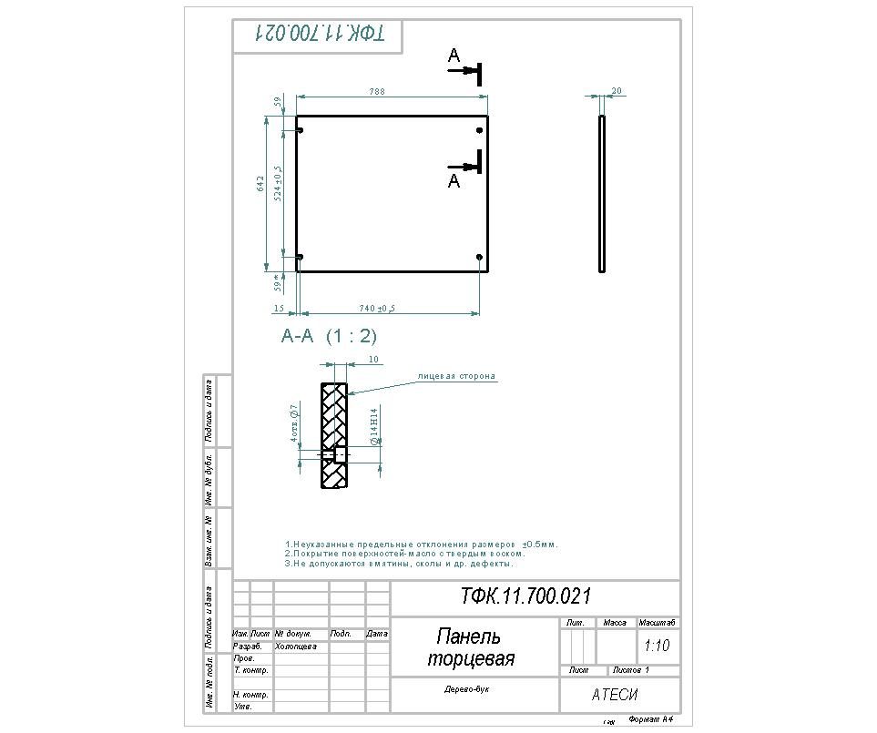 Панель торцевая выполнена из натуральной древесины и обработана специальным экологически чистым составом, что значительно упрощает санитарно-гигиеническую обработку изделия не ухудшая его эстетический вид.
