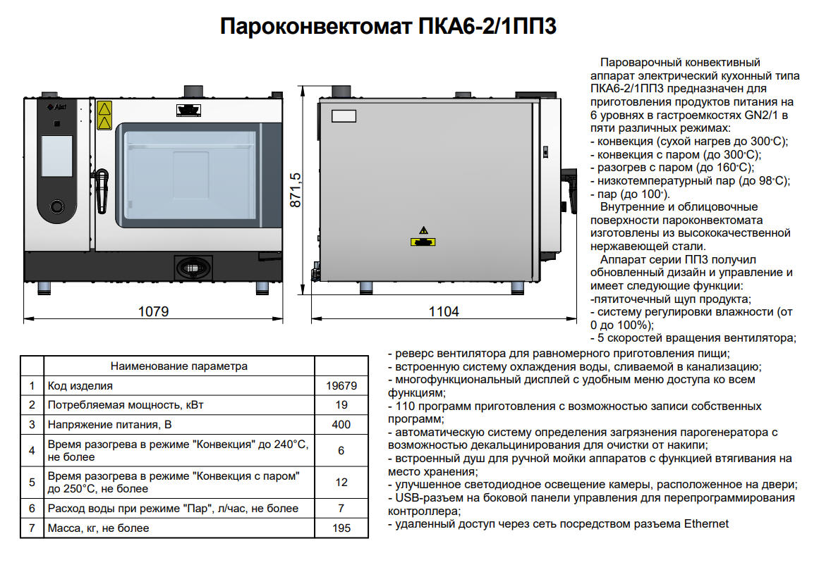 Особенности пароконвектомата ПКА 6-2/1ПП3: