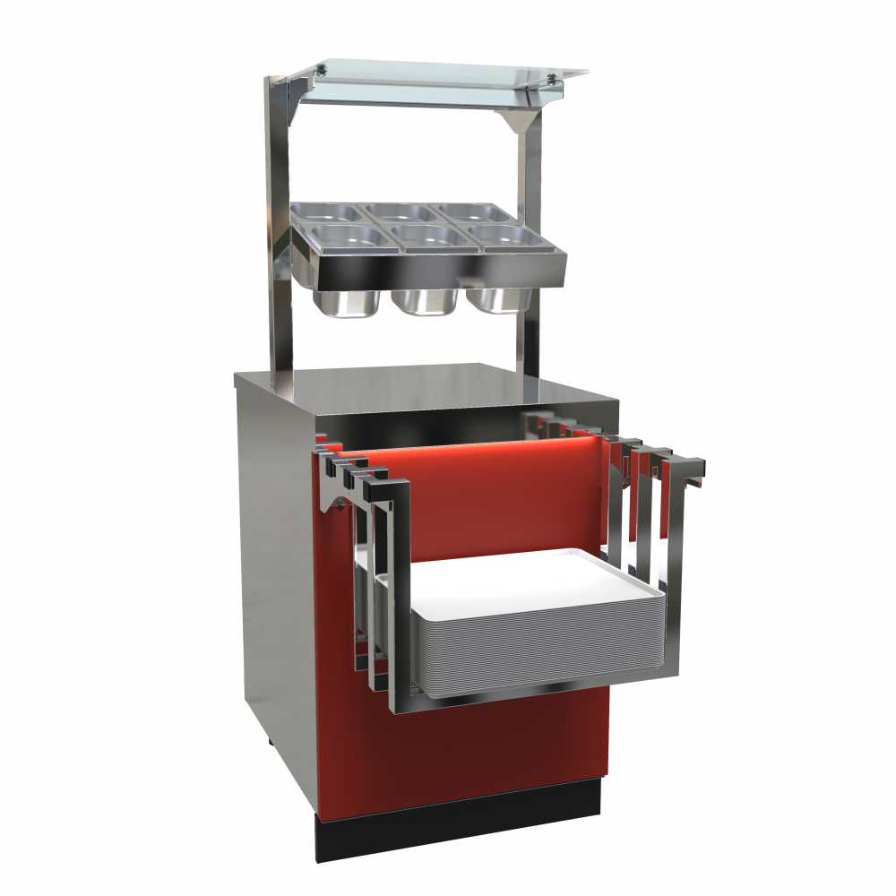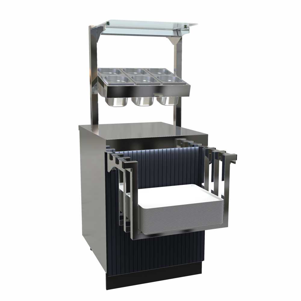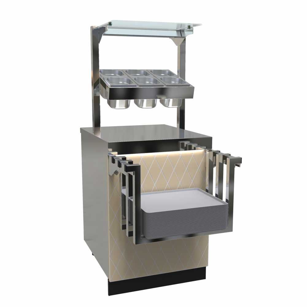 Прилавок для столовых приборов и подносов с хлебницей ПСПХ-70Е предназначен для хранения столовых приборов (ложек и вилок), а также хлеба в составе линии самообслуживания на предприятиях общественного питания.