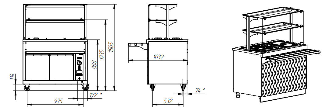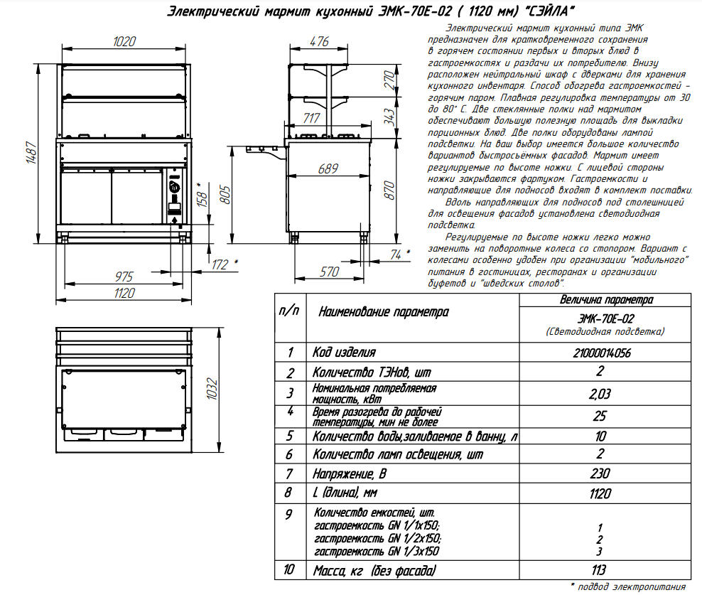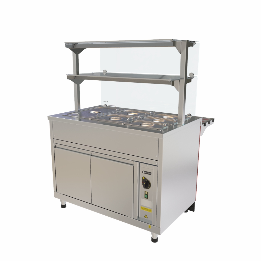 Мармит электрический кухонный предназначен для кратковременного хранения в горячем состоянии вторых блюд в функциональных емкостях и раздачи их потребителю. Мармит устанавливается на предприятиях общественного питания отдельно или в составе технологических линий горячих цехов и линиях раздачи столовых самообслуживания.