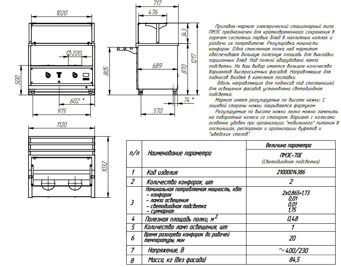 Прилавок-мармит электрический для первых блюд предназначен для кратковременного хранения в горячем состоянии первых блюд в наплитных котлах и раздачи их потребителю на предприятиях общественного питания самостоятельно или в составе технологических линий.