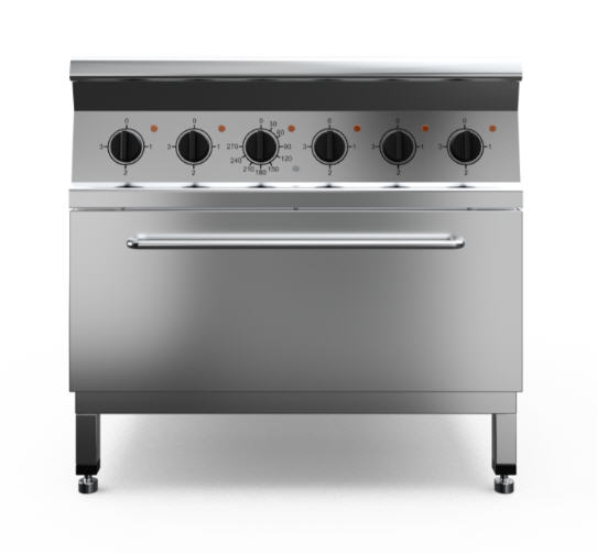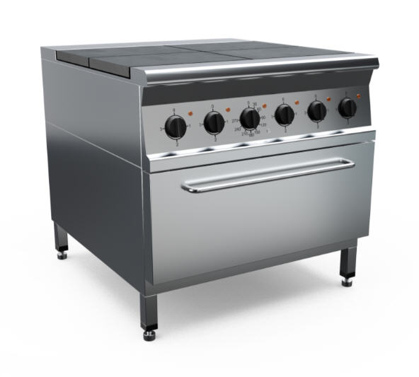 Плита электрическая с жарочным шкафом, корпус и жарочный шкаф из нержавеющей стали марки AISI 430 толщиной 1 мм. Имеет 4 чугунные конфорки мощностью по 3 кВт, жарочный шкаф размером 538x535x290 мм, мощностью 4,8 кВт, питание 380 В. Общая мощность 16,8 кВт. Габариты конфорки 295x417 мм. Площадь конфорок - 0,48 кв.м. Вес плиты 96/120 кг. Габариты упаковки 1050х915х1150 мм.
