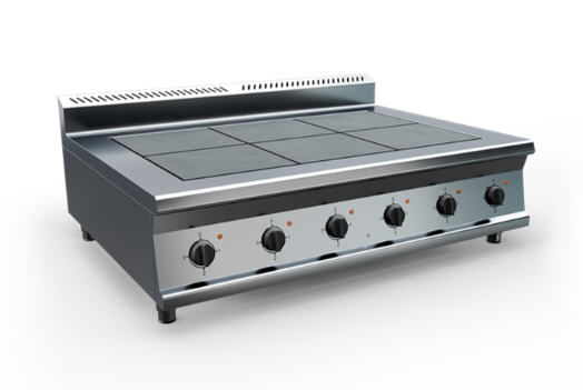 Плита чугунная, корпус из нержавеющей стали марки AISI 430 толщиной 1 мм. Имеет 6 чугунных конфорок мощностью по 2,5 кВт, питание 380 В. Общая мощность 15 кВт. Габариты конфорки 300х300 мм. Поставляется в собранном виде. Вес плиты 92 кг. Габариты упаковки 1235х915х485 мм.