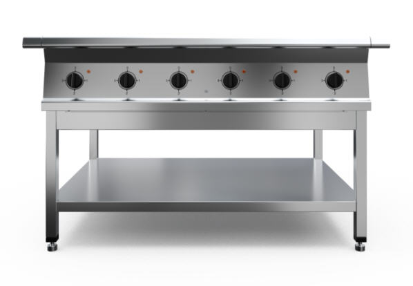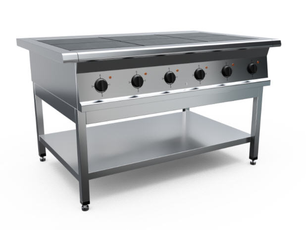Плита электрическая, корпус из нержавеющей стали марки AISI 430 толщиной 1 мм, сборно-разобранная подставка. Имеет 6 чугунные конфорки мощностью по 3 кВт, питание 380 В. Общая мощность 18 кВт. Габариты конфорки 295x417 мм. Площадь конфорок - 0,72 кв.м. Поставляется в разобранном виде. Вес плиты 148 кг. Габариты упаковки 1235х915х585 мм.