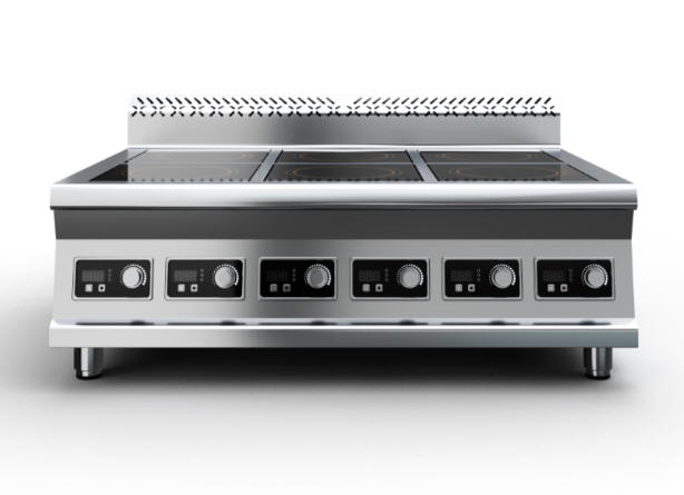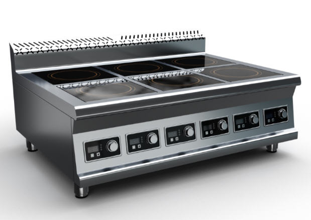 Плита индукционная, столешница из нержавеющей стали марки AISI 430 толщиной 1 мм, корпус из нержавеющей стали марки AISI 430 толщиной 0,8 мм.  Имеет 6 конфорок мощностью по 3,5 кВт, питание 380 В. Габариты стеклокерамики 280х280х6 мм. Поставляется в собранном виде.