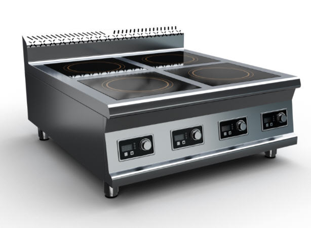 Плита индукционная, столешница из нержавеющей стали марки AISI 430 толщиной 1 мм, корпус из нержавеющей стали марки AISI 430 толщиной 0,8 мм. Имеет 4 конфорки мощностью по 3,5 кВт, питание 380 В. Габариты стеклокерамики 280х280х6 мм. Поставляется в собранном виде.