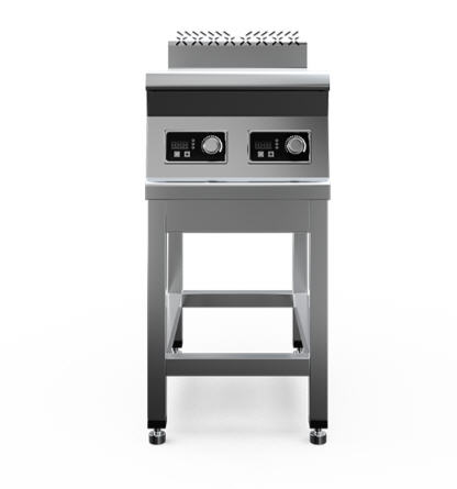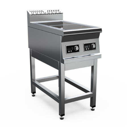 Плита индукционная, столешница из нержавеющей стали марки AISI 430 толщиной 1 мм, корпус из нержавеющей стали марки AISI 430 толщиной 0,8 мм. Имеет 2 конфорки мощностью по 3,5 кВт, питание 380 В. Габариты стеклокерамики 280х280х6 мм. Поставляется в собранном виде.