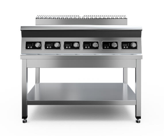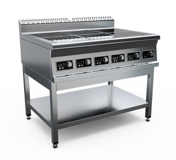 Плита индукционная, столешница из нержавеющей стали марки AISI 430 толщиной 1 мм, корпус из нержавеющей стали марки AISI 430 толщиной 0,8 мм. Имеет 6 конфорок мощностью по 3,5 кВт, питание 380 В. Габариты стеклокерамики 280х280х6 мм. Подставка поставляется в разобранном виде. Вес плиты индукционной 58 кг. Габариты упаковки 1025х765х485 мм.