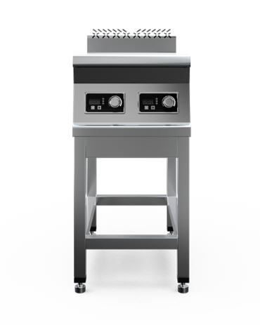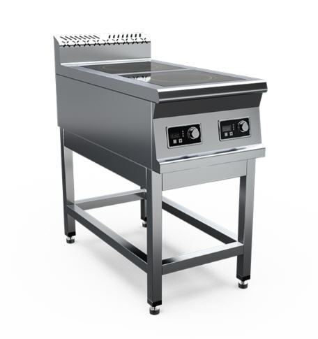Плита индукционная, столешница из нержавеющей стали марки AISI 430 толщиной 1 мм, корпус из нержавеющей стали марки AISI 430 толщиной 0,8 мм. Имеет 2 конфорки мощностью по 3,5 кВт, питание 380 В. Габариты стеклокерамики 340х340х6 мм. Подставка поставляется в разобранном виде. Вес плиты индукционной 33 кг. Габариты упаковки 465х915х485 мм.