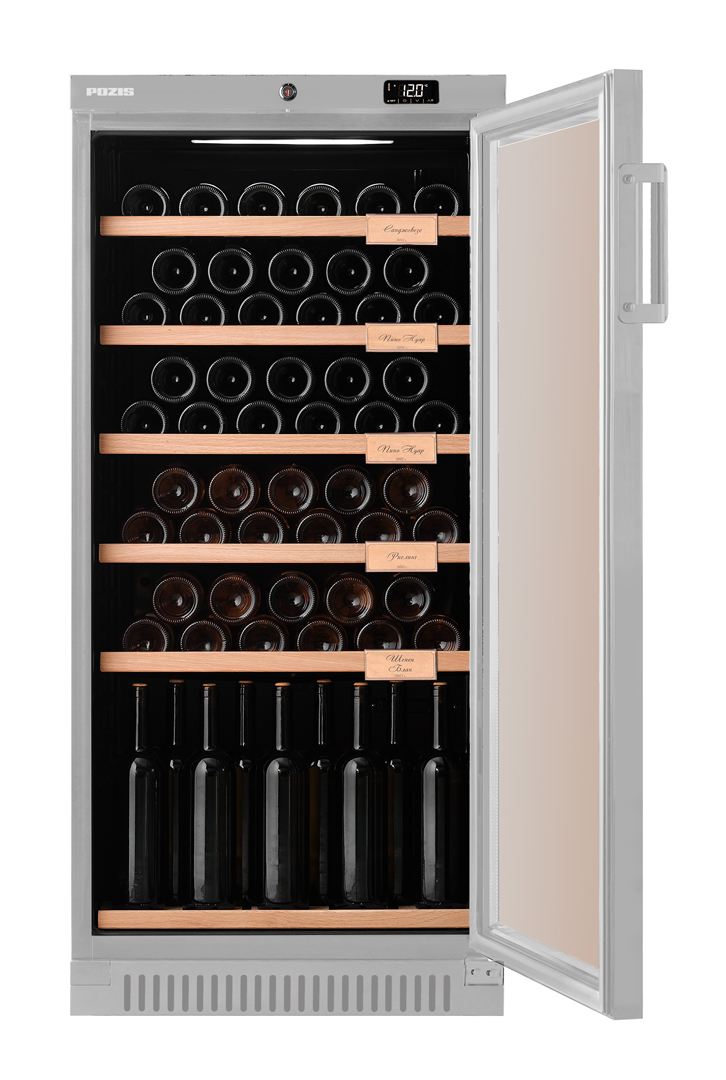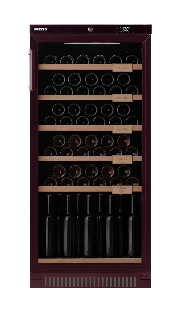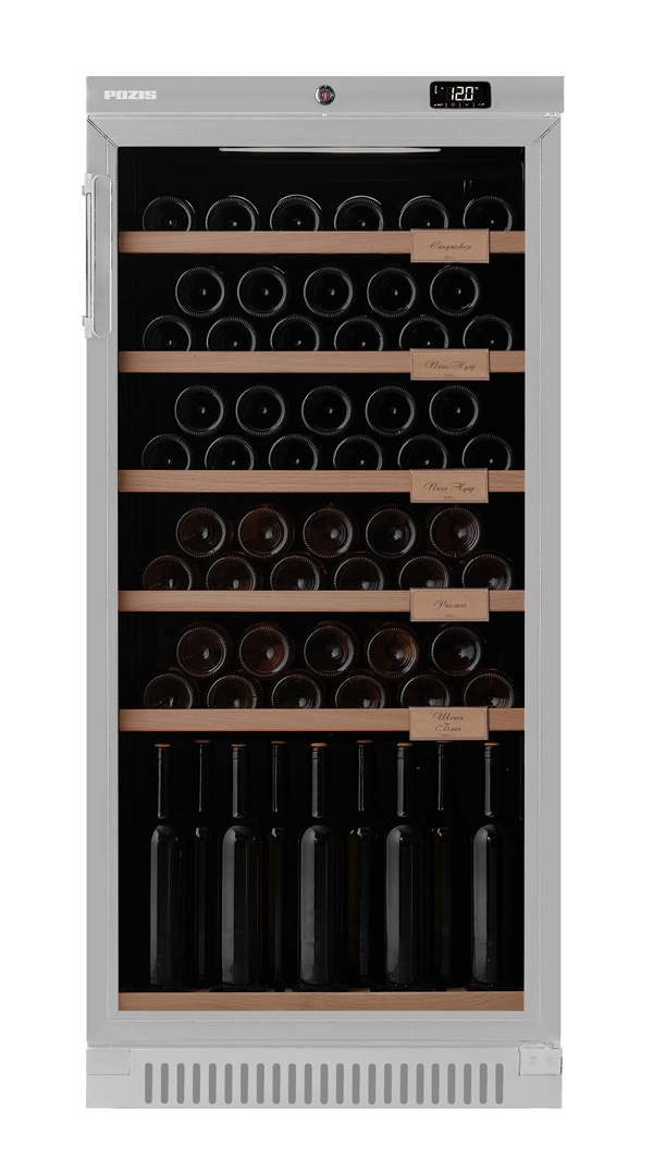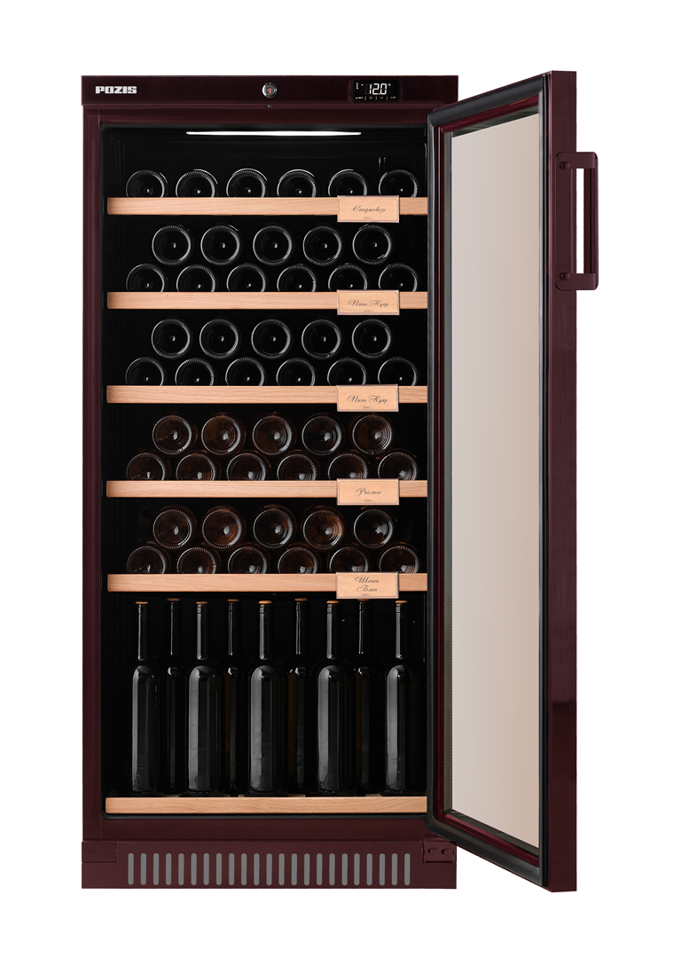 Предназначен для демонстрации и хранения при заданной температуре охлажденных вин. Особенности и дополнительные элементы: полки 5 штук и одна подставка (дерево), вместимость до 64 бутылок вина, микропроцессорный регулятор температуры со сверхчувствительным датчиком, возможность регулирования температуры на внешней панели управления, световая индикация режима работы, электронный блок управления, дверь-стеклопакет с тонированным покрытием против проникновения УФ-лучей с замком, автоматическое поддержание температуры в камере.