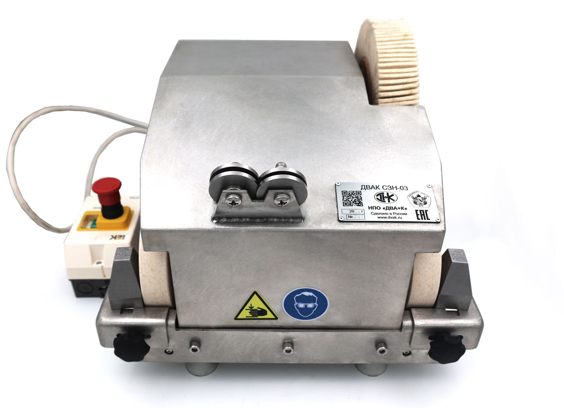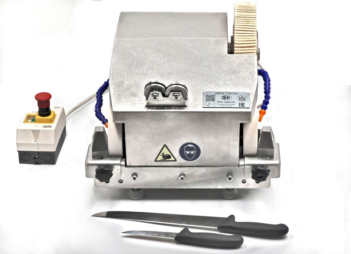 Заточной станок ДВАК СЗН-03 в базовой комплектации предназначен для заточки обвалочных, жиловочных, боенских ножей, а также для правки режущей кромки и полировки.