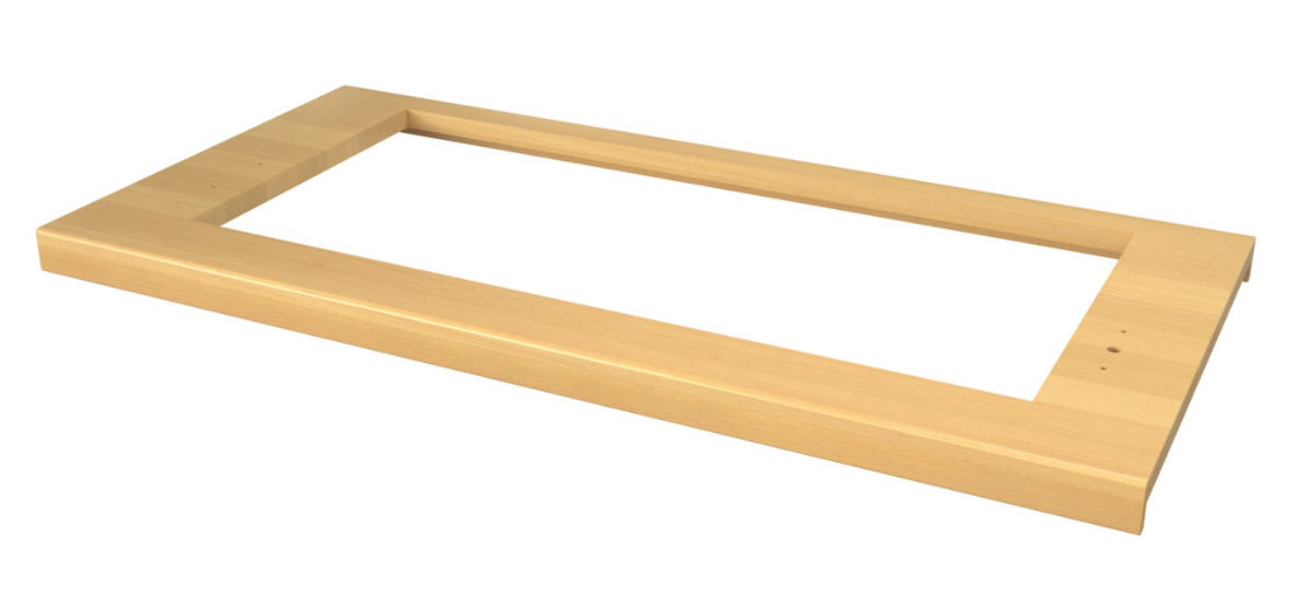 Столешница выполнена из натуральной древесины (бук). Поверхность столешницы покрыта экологически чистым маслом с твёрдым воском, что значительно упрощает санитарно-гигиеническую обработку изделия и при необходимости его реставрацию. Это покрытие влагостойкое и безвредное при контакте с пищевыми продуктами. Имеет отверстия для установки полки.
