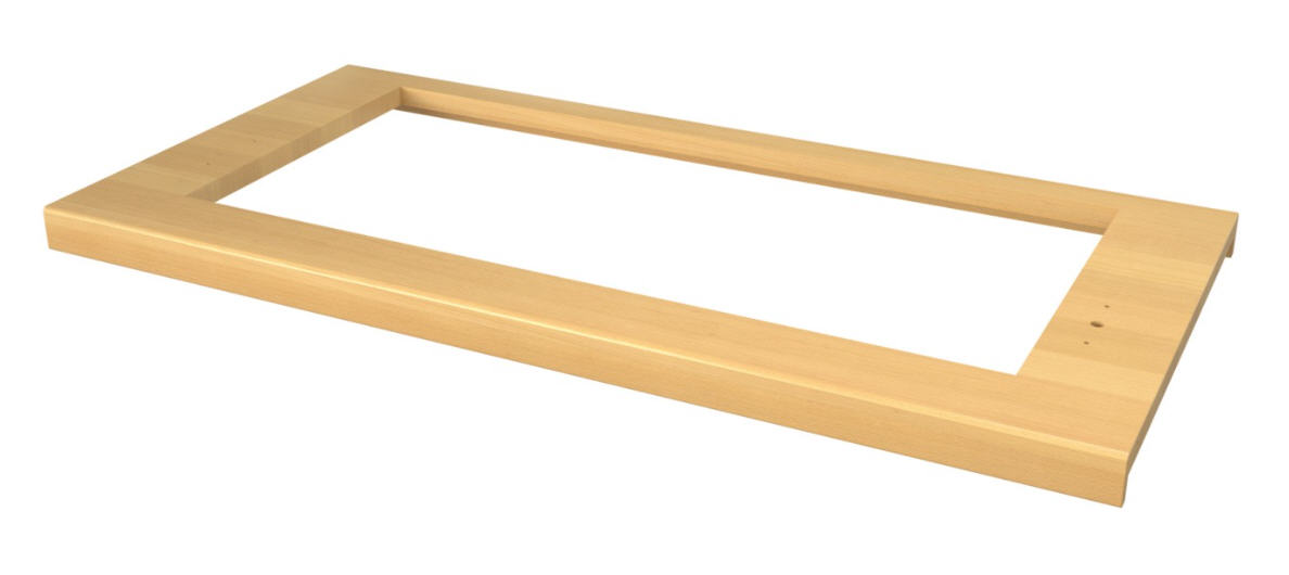 Столешница выполнена из натуральной древесины (бук). Поверхность столешницы покрыта экологически чистым маслом с твёрдым воском, что значительно упрощает санитарно-гигиеническую обработку изделия и при необходимости его реставрацию. Это покрытие влагостойкое и безвредное при контакте с пищевыми продуктами. Имеет отверстия для установки полки.