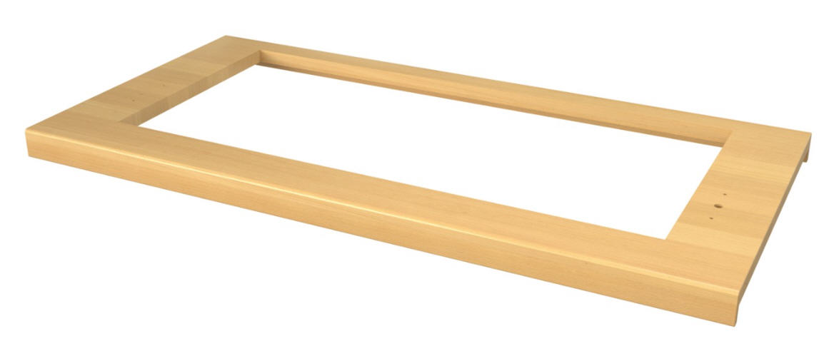 Столешница выполнена из натуральной древесины (бук). Поверхность столешницы покрыта экологически чистым маслом с твёрдым воском, что значительно упрощает санитарно-гигиеническую обработку изделия и при необходимости его реставрацию. Это покрытие влагостойкое и безвредное при контакте с пищевыми продуктами. Имеет отверстия для установки полки.