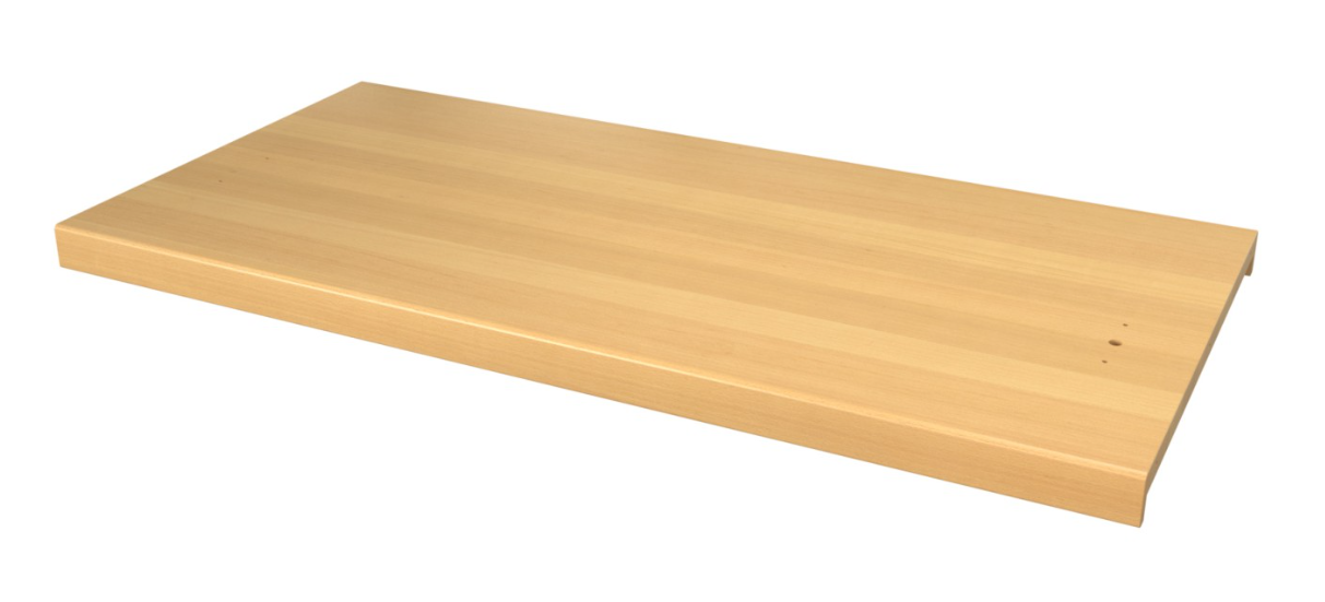 Столешница выполнена из натуральной древесины (бук). Поверхность столешницы покрыта экологически чистым маслом с твёрдым воском, что значительно упрощает санитарно-гигиеническую обработку изделия и при необходимости его реставрацию. Это покрытие влагостойкое и безвредное при контакте с пищевыми продуктами. Имеет отверстия для установки полки.