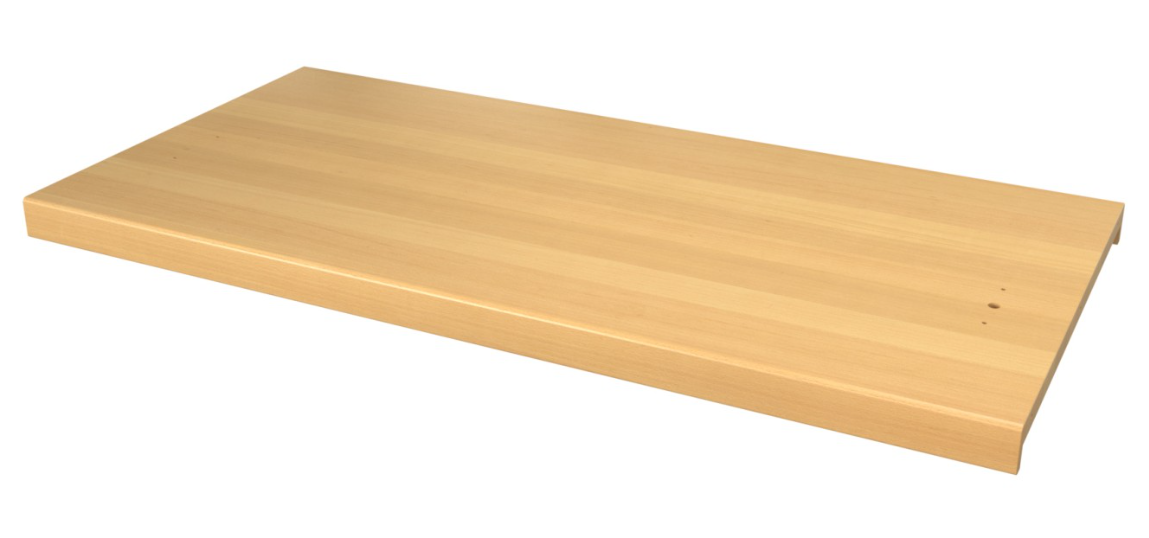 Столешница выполнена из натуральной древесины (бук). Поверхность столешницы покрыта экологически чистым маслом с твёрдым воском, что значительно упрощает санитарно-гигиеническую обработку изделия и при необходимости его реставрацию. Это покрытие влагостойкое и безвредное при контакте с пищевыми продуктами. Имеет отверстия для установки полки.