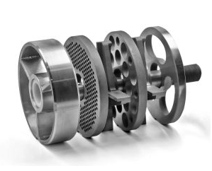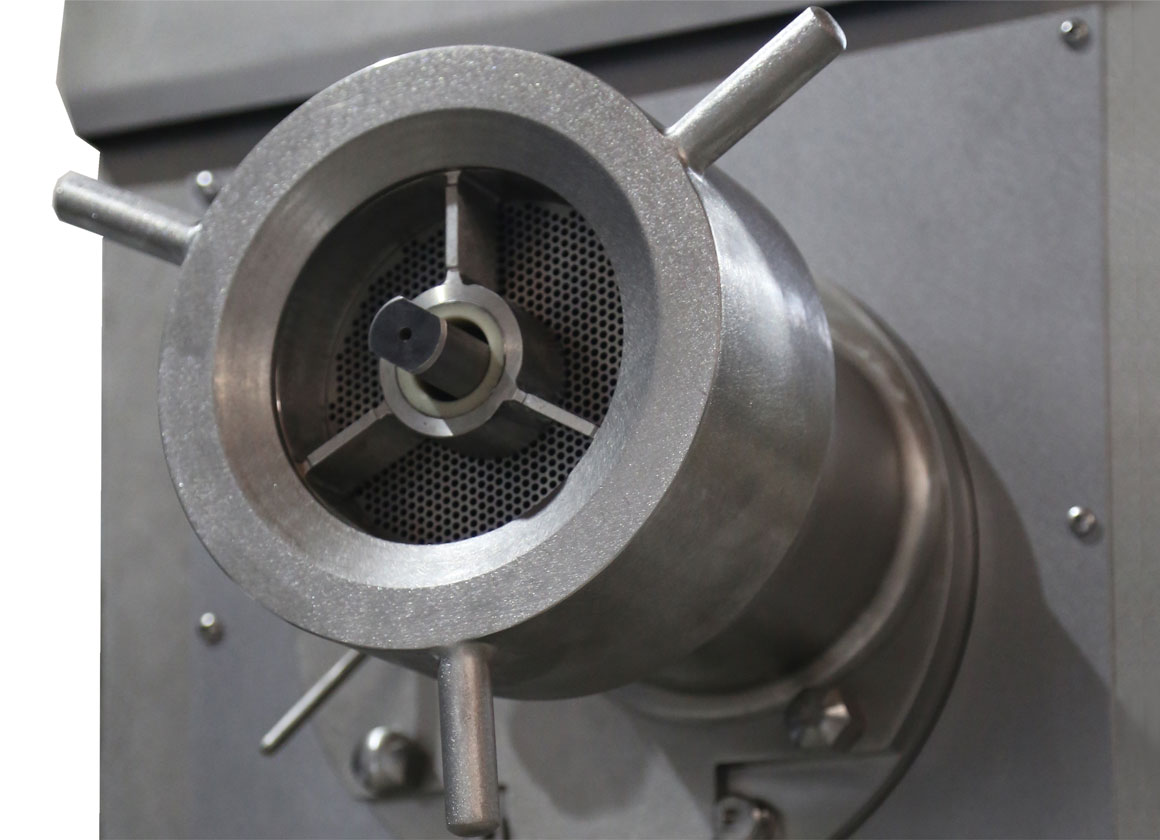 — Достаточно комфортные условия резания сырья обеспечиваются тем, что при диаметре решеток 160 мм имеет место меньшее давление сырья на режущий блок, в результате исключается сминание мышечных волокон.