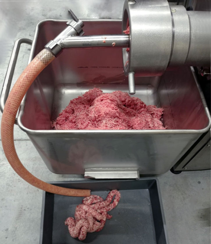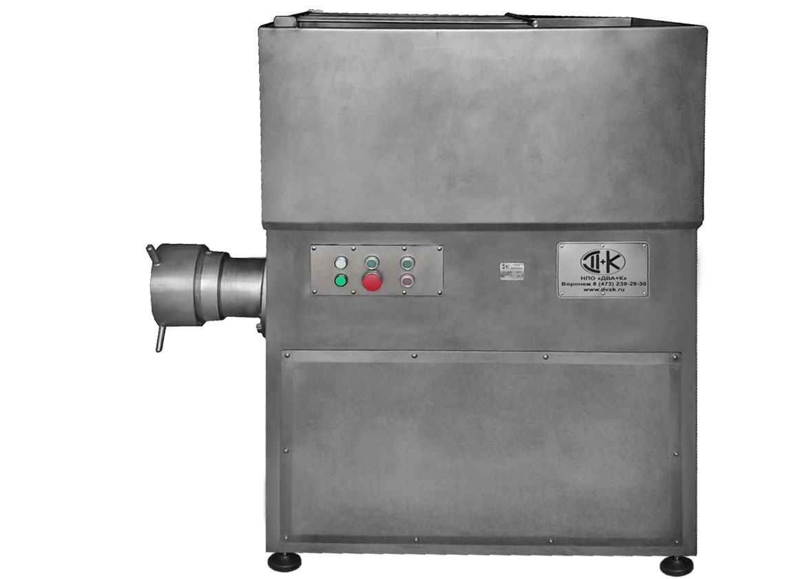 Волчок ДВАК В-200 угловой с частотным регулированием предназначен для измельчения бескостного жилованного мяса, а также других видов пищевого сырья (овощей, сыра, рыбы), охлажденных до температуры не ниже +2ºС в толще, массой кусков не более 0,5кг и с содержанием соединительной и не жилованной ткани не более 10% от общей массы загружаемого сырья, а также для измельчения пищевого сырья с температурой до -10ºС, массой кусков не более 0,25кг, после предварительного измельчения на блокорезке.