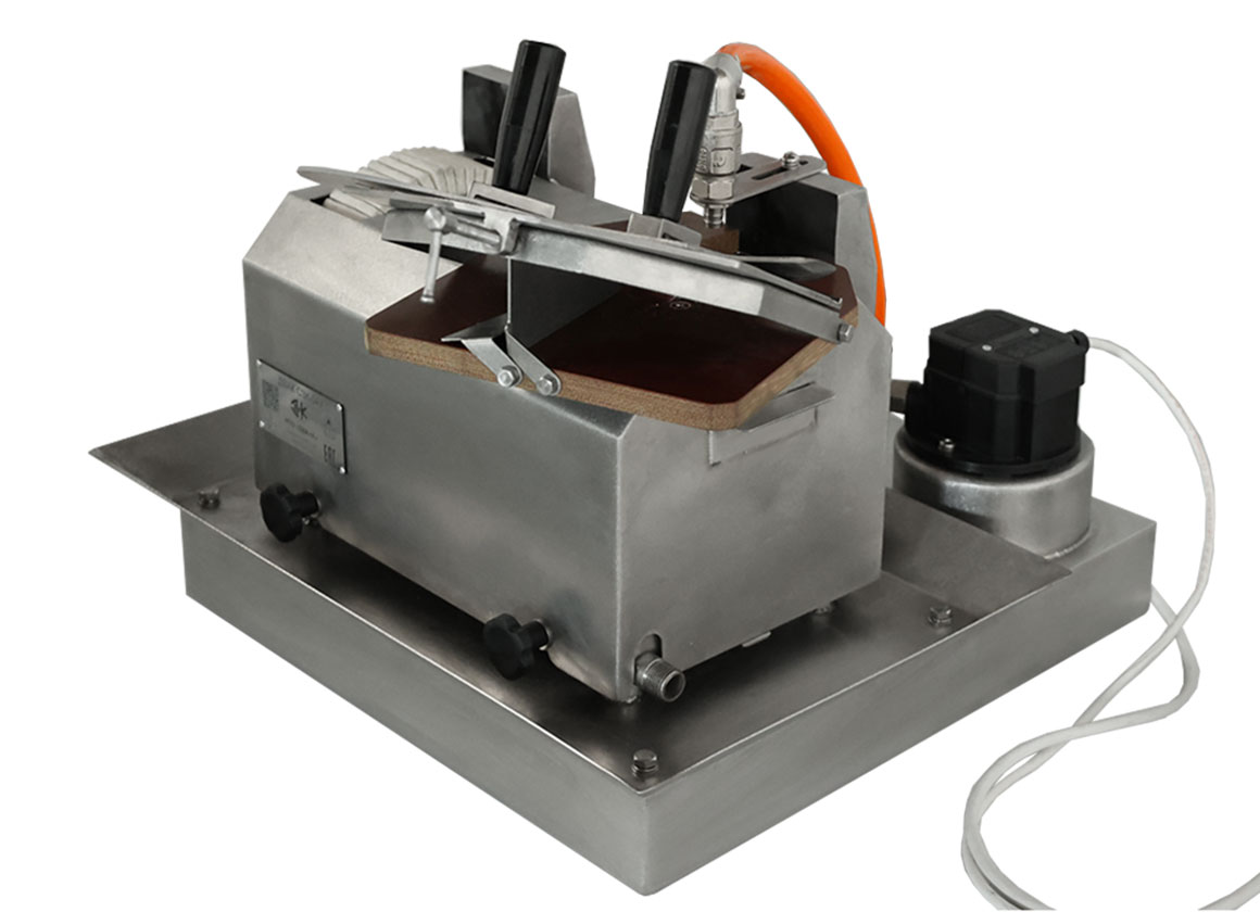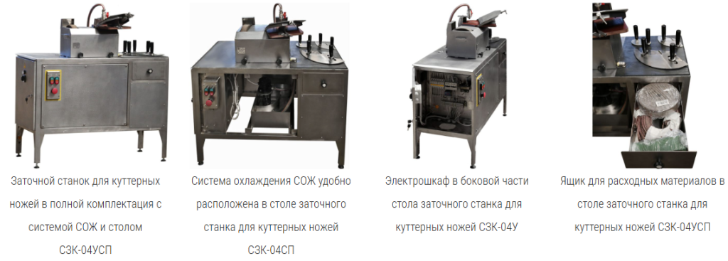 Заточной станок обеспечивает правильную заточку режущей кромки куттерного ножа, что влияет на качество и степень измельчения фарша, температуру нагрева фарша, продолжительность куттерования, длительность эксплуатации, как ножевой головки, так и самого куттера.