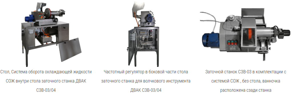 Заточные станки серии СЗВ-03 производят заточку всех видов волчкового режущего инструмента: крестовых ножей и решёток, диаметром до 200 мм, а также со ступицей (буртом) и без неё, с кольцом и без него.