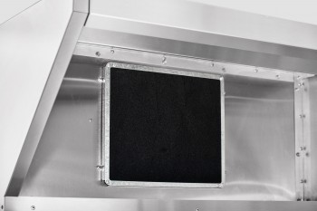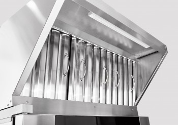 Зонт не занимает полезное кухонное пространство, так как устанавливается на крышу конвекционной печи. Зонт имеет обработанные края для безопасной работы персонала.